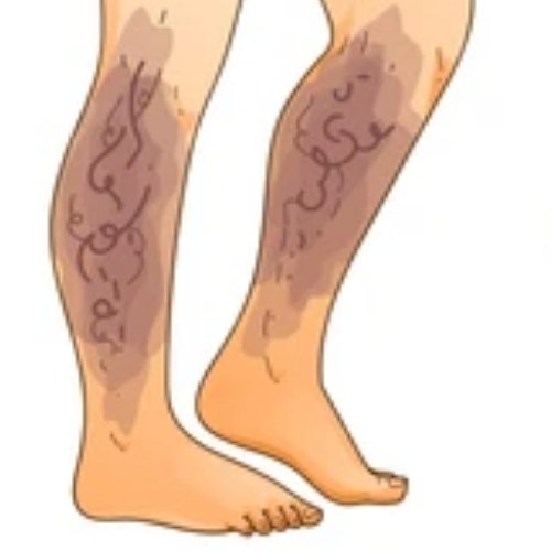 The skin around affected veins may darken, harden, or become dry. In advanced cases, painful ulcers can develop near the ankles due to prolonged poor circulation.